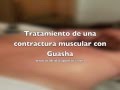 Paciente con una contractura entre la columna vertebral y la escápula derecha. Antes de aplicar el tratamiento con Guasha se ha tratado la contractura con electroacupuntura.mtcna киев Tratamiento de una contractura con Guasha | |